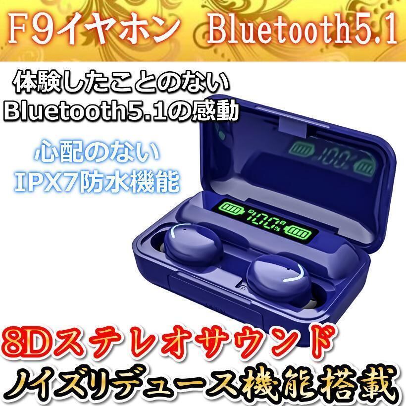 bluetoothイヤホン ワイヤレス 5.1 Hi-Fi高音質 F9 ネイビー