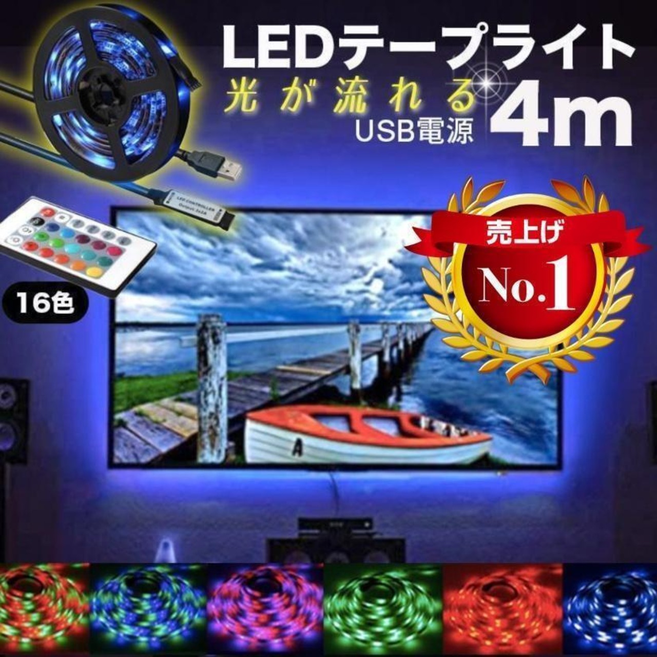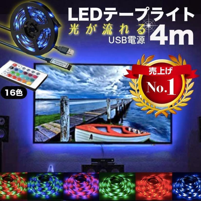 LED テープライト USB 4m LEDテープ RGB 間接照明 リモコン